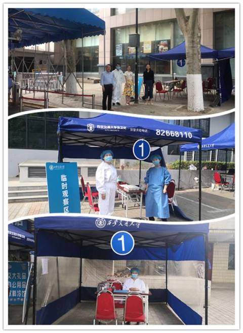 第二批学生返校前,校医院第一时间召开专题会议,梳理总结第一批学生返校工作经验不足,扬长补短,进一步细化各项工作流程和细节,做好人员调配、物资准备等工作,严守疫情防控和医疗保障关。各校区、各科、各岗医务人员在身兼数职、多岗交叉情况下,听令调遣,克服困难,哪里需要到哪里。5月23日-25日,校医院兴庆校区、雁塔校区、创新港校区近50名医务人员着一级防护,从晨光熹微到暮色四合,驻守各校区13个医学观察点,助力12849学子顺利完成返校。