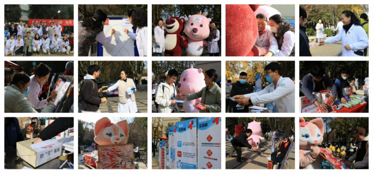 活动通过悬挂主题横幅、摆放防艾宣传易拉宝展版、发放宣传资料、现场宣教等方式展开。在各校区宣传点,医务人员及志愿者积极热情地向师生们发放防艾科普宣传册,现场为学生讲解防艾基本常识,解答同学们的疑问。现场还有可爱的“抱抱团”和围观同学热情拥抱。同学还穿上玩偶服扮演艾滋病感染者,为来往同学提供“艾”的抱抱,让同学们明白对艾滋病患者要多一点关爱,少一点歧视。活动现场,为激发参与热情,现场有青春红丝带志愿团、学生心理学协会、红十字协会、南洋青年志愿者协会、唐仲英爱心社等学生社团同步在校园开展宣传活动。活动设投壶等游戏与同学们轻松互动,并发放防艾宣传资料及小礼物,在防艾文创品发送中传递“防艾知识”,引导学生正确认识艾滋病、消除对艾滋病的恐惧。