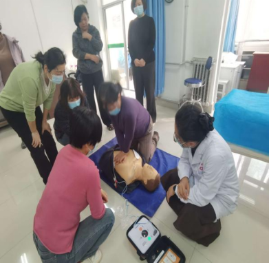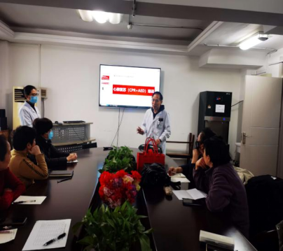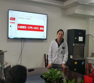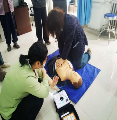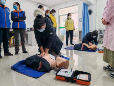 王丹医生作为西安市红十字会首批心肺复苏培训讲师。已经成功参与了近十次培训课程,仅在我校就已经培训学员近500人。她凭借专业知识与丰富经验,将心肺复苏的原理、步骤、注意事项等讲解得细致入微、通俗易懂。为便于理解,她把胸外按压比作给心脏“加油打气”,人工呼吸比作输送“生命之气”,还结合实际案例分析急救中的应对方法,让管理员们收获满满。