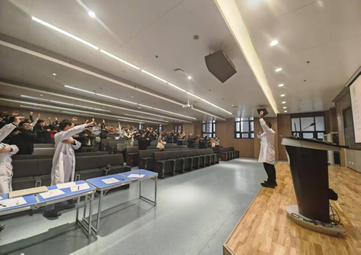 针对师生长期伏案工作、缺乏运动等普遍现象,创新港门诊部的王飞医生为现场师生带来题为《久坐伤不起,科研动起来》的健康管理课。王医生结合医学专业知识,阐述了久坐对心血管、肌肉骨骼、代谢系统带来的多重危害,并分享了多种在实验室、办公室即可实践的“微运动”方案。他鼓励师生利用碎片时间进行伸展、走动、运动,并逐步培养规律运动的习惯。讲座中,王医生还带领大家进行了简单的现场互动练习,生动演示了如何“让身体在科研间隙动起来”,现场师生积极参与,氛围热烈。